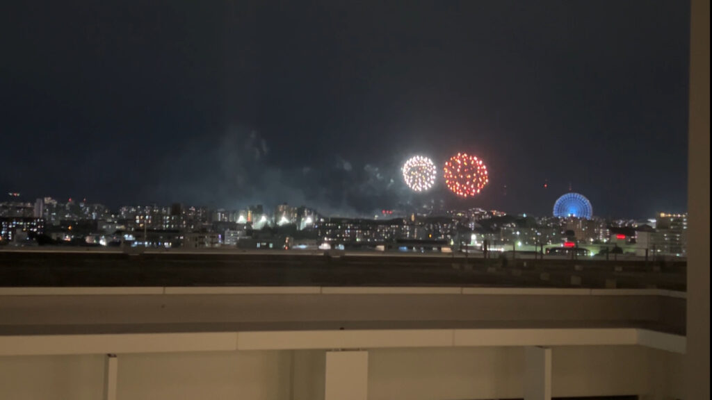 病室の窓からは、大阪万博跡地「エキスポシティ」の観覧車が見えます。